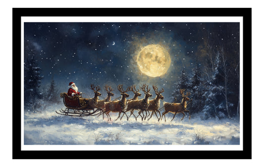 Prints- Seasonal- Christmas- 16 x 20 Horizontal Print Board- Santa-Reindeer-Moon & Stars-#3