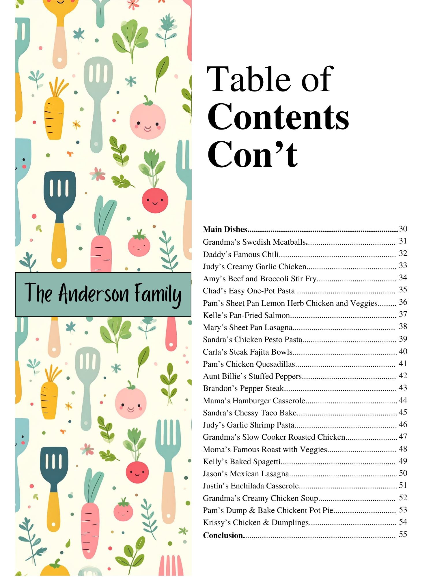 Cookbook- Custom- 76-100 Recipe Pages- SAMPLE 3- ANDERSON