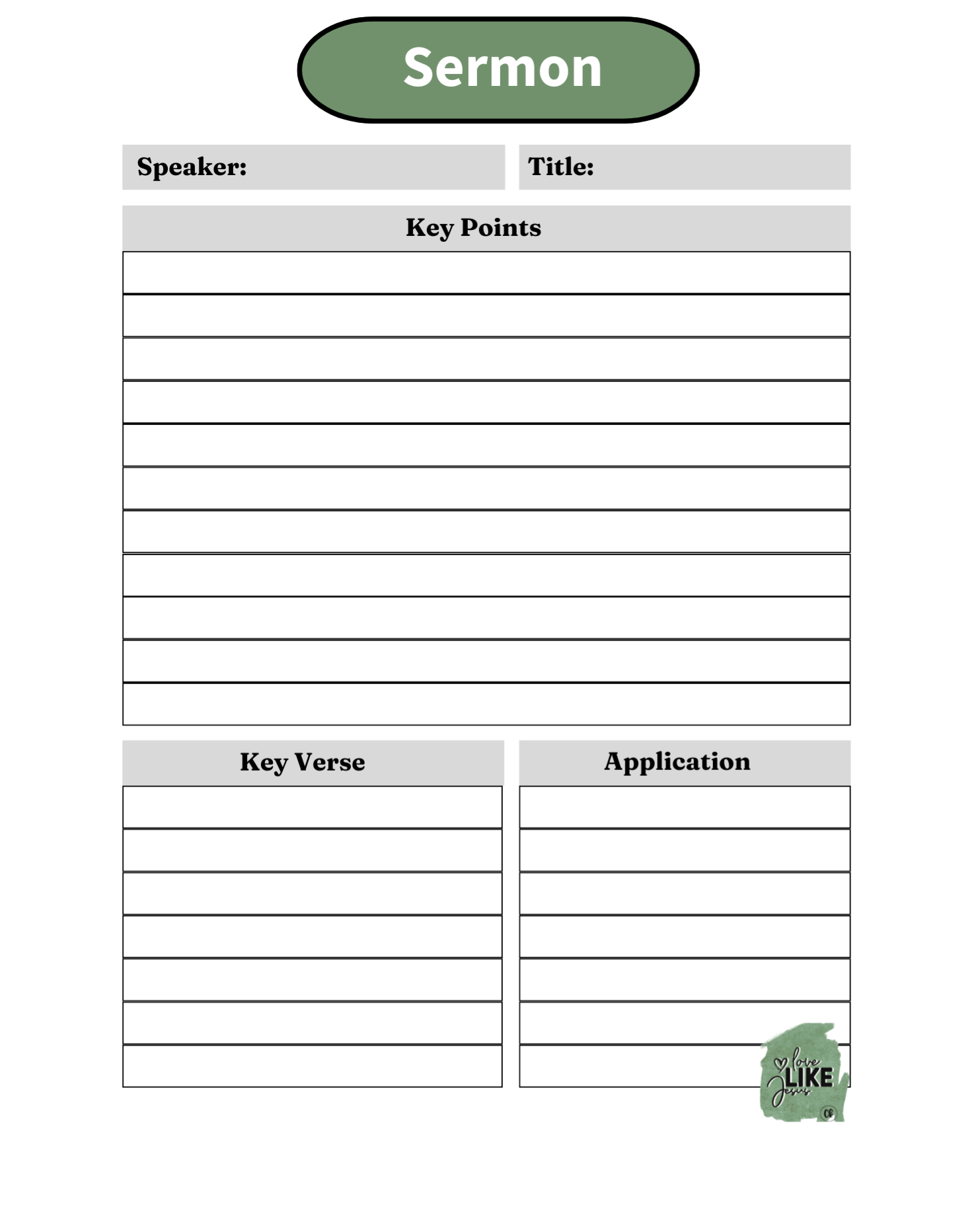 This handcrafted journal lets you document sermons and bible studies. In addition there are pages for you to write down your favorite and important bible verses that you want to remember. It also includes prayer journal sheets that you can write down your prayers, prayers for others, what you are thankful for and people to encourage. 60 pages included on quality paper, coiled bound notebook. Love Like Jesus