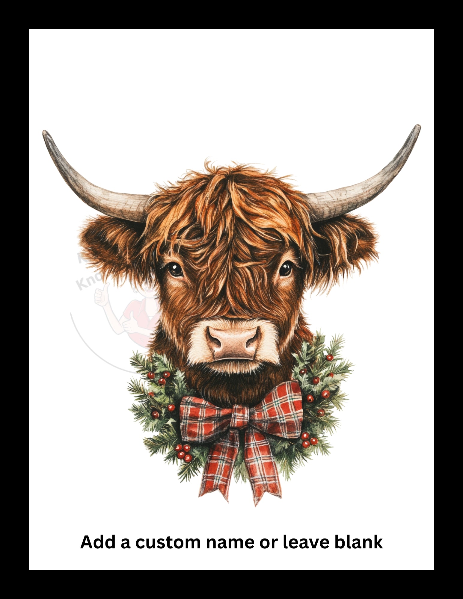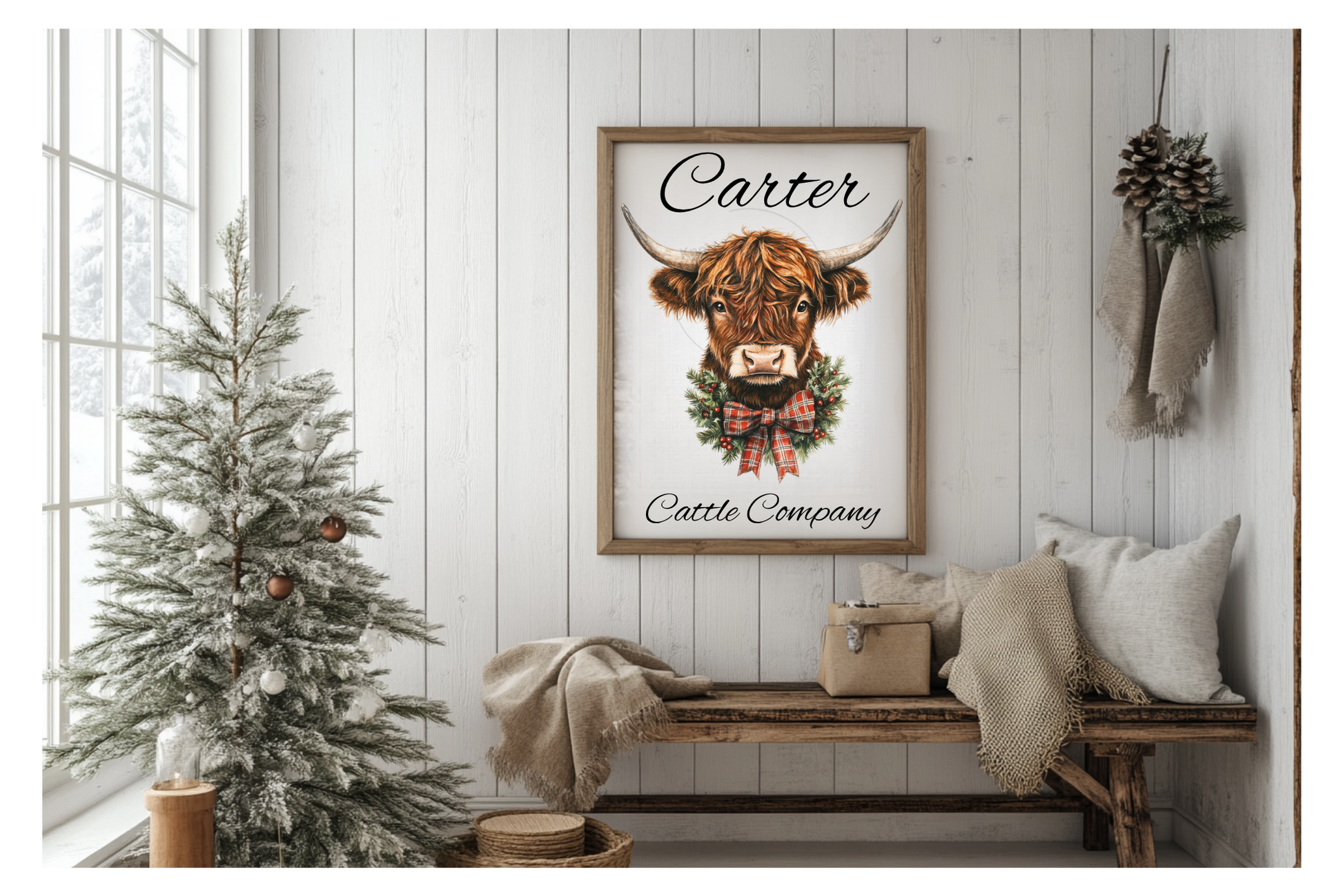 Prints- Seasonal- Christmas- 16 x 20 Vertical Print Board- Cow Wreath Cattle Comp-#10