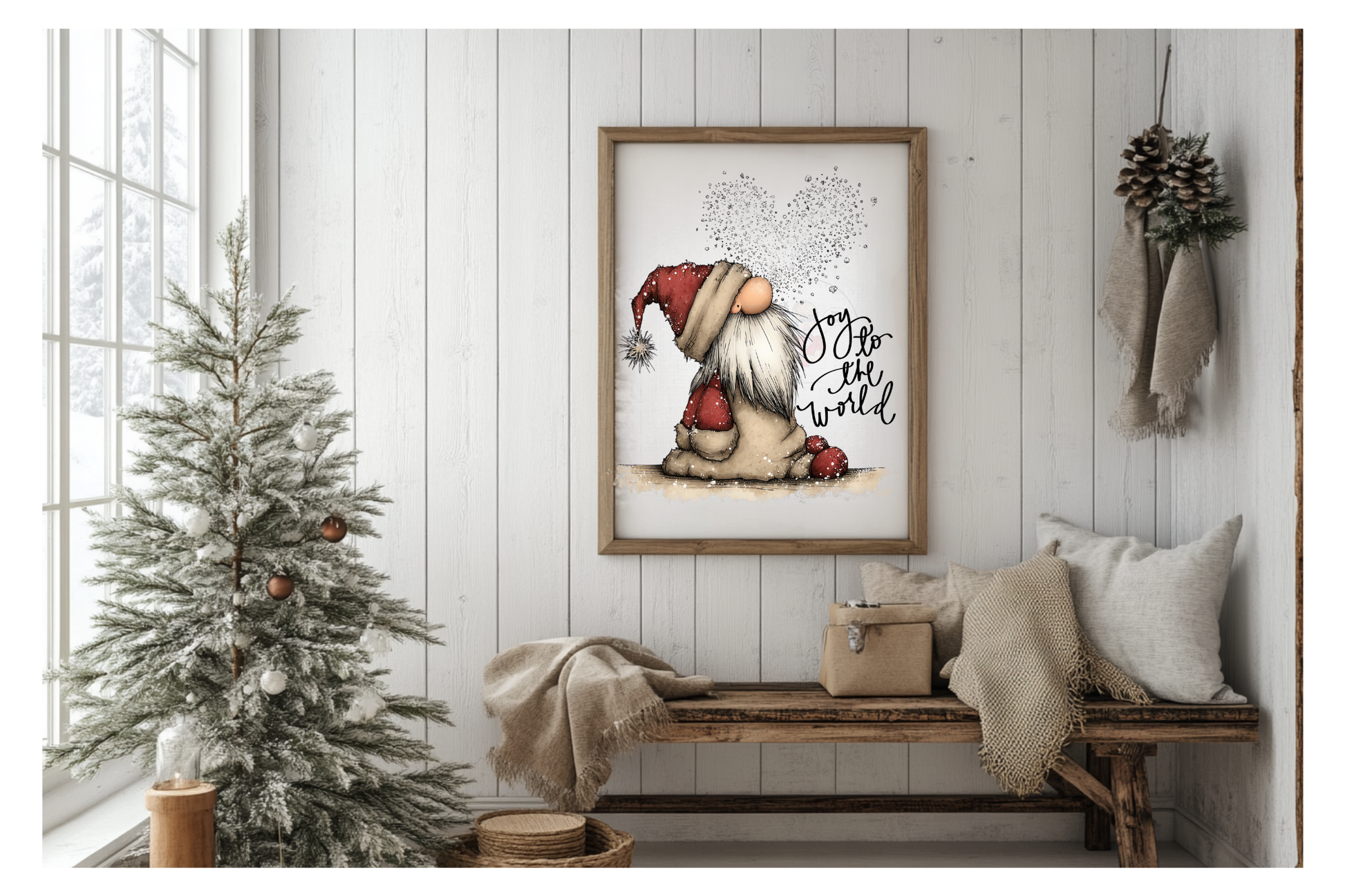 Prints- Seasonal- Christmas- 16 x 20 Vertical Print Board- Joy To The World Santa-#7